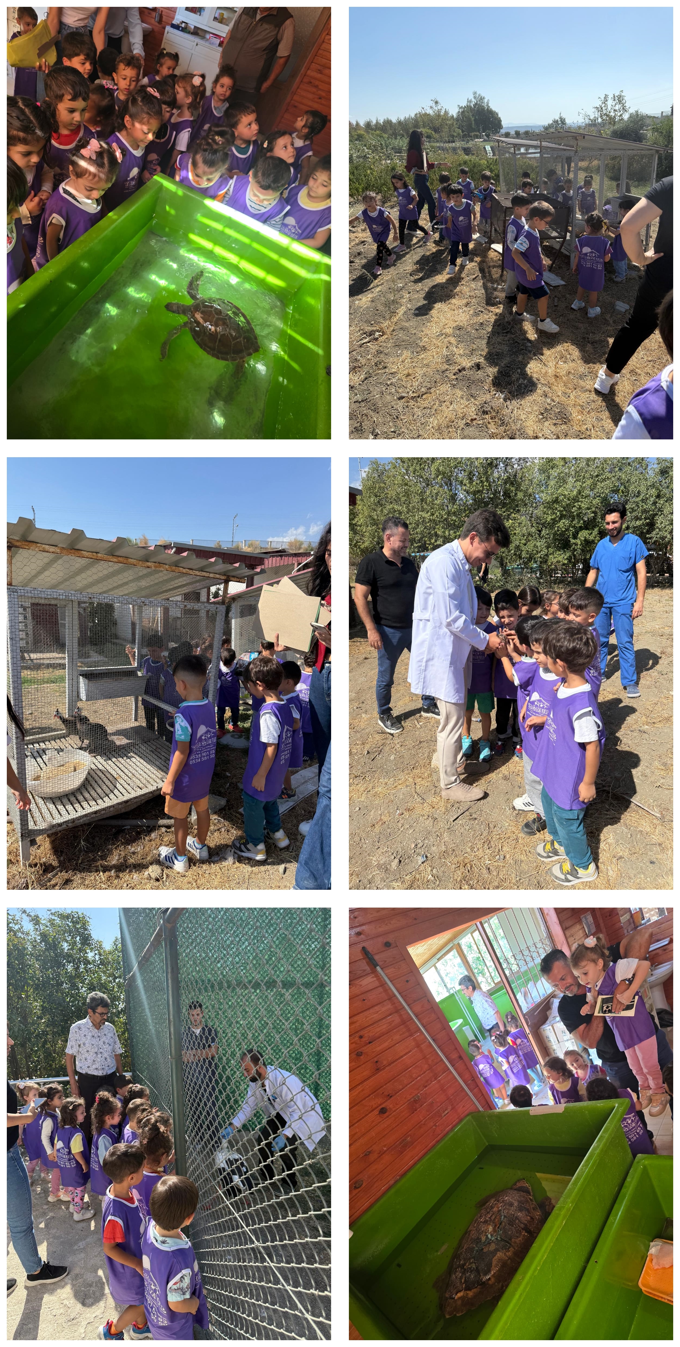 Program kapsamında minik ziyaretçiler; veteriner hekimler eşliğinde Yaban Hayvanı Kurtarma ve Rehabilitasyon Merkezi’inde yer alan Leylekler ve diğer yabani kuşların, Deniz Kaplumbağaları İlk Yardım, Tedavi ve Kurtarma Uygulama ve Araştırma Merkezi (DEKİYM)’inde yer alan Deniz Kaplumbağaları (Caretta caretta), Kanatlı hayvan Ünitesinde yer alan çeşitli kanatlı türlerinin ve mevcutta var olan Tekeleri (Keçi)’in bakım ve barınma alanlarını gezdi. Hayvanların tedavi süreçlerini yakından gözlemleyen çocuklara, hayvanların da tıpkı insanlar gibi ilgi, sevgi ve özen gerektirdiği anlatıldı.